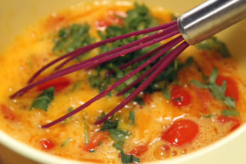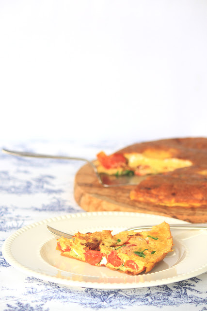 Dziś chciałabym Wam zaproponować przepis na frittatę z pomidorkami koktajlowymi i rukolą.